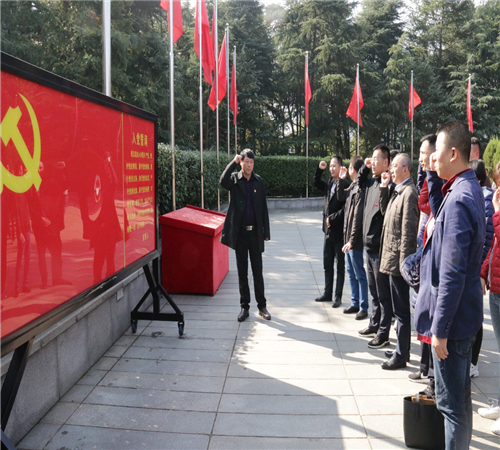 公司黨總支全體黨員胸前佩戴黨徽,于11月29日上午11時到達韶山。青山肅穆、白云俯首,在毛主席銅像廣場,首先由黨總支書記李方愛同志帶領全體黨員敬獻了花籃,全體黨員鞠躬致敬,繞銅像一周,深切緬懷毛澤東同志。隨后,全體黨員在黨旗下重溫入黨誓詞,參觀毛澤東同志故居。